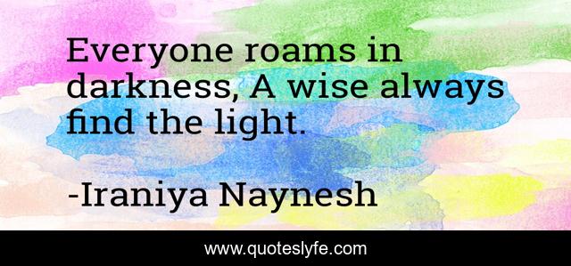 This page presents the quote "Everyone roams in darkness, A wise always find the light.". Author of this quote is Iraniya Naynesh. This quote is about darkness-and-light, life, wise, wise-words, roam,.