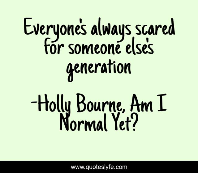 "Holly Bourne, Am I Normal Yet? Quotes." Quoteslyfe.com, 2025. Fri. 05 Dec. 2025. <https://www.quoteslyfe.com/quote/Everyone-s-always-scared-for-someone-else-246257>.