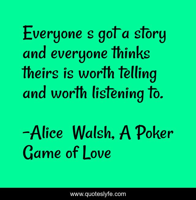 "Alice Walsh, A Poker Game of Love Quotes." Quoteslyfe.com, 2025. Fri. 05 Dec. 2025. <https://www.quoteslyfe.com/quote/Everyone-s-got-a-story-and-everyone-240074>.