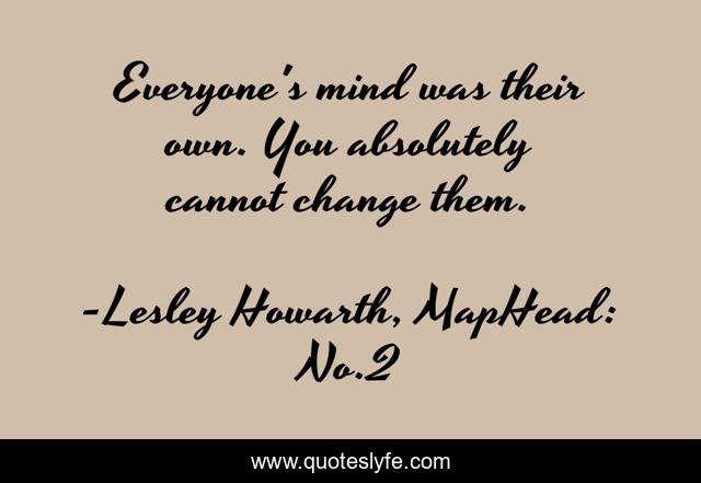 This page presents the quote "Everyone's mind was their own. You absolutely cannot change them.". Author of this quote is Lesley Howarth, MapHead: No.2. This quote is about lesley-howarth, maphead-2, mind,.