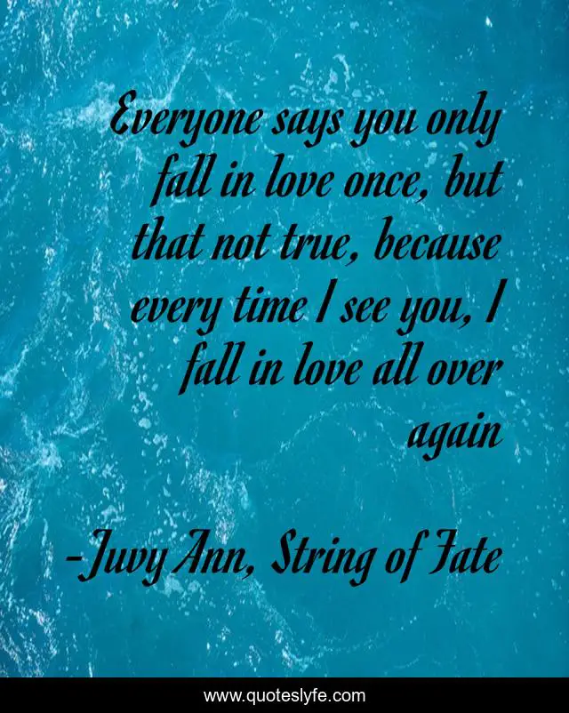 This page presents the quote "Everyone says you only fall in love once, but that not true, because every time I see you, I fall in love all over again". Author of this quote is Juvy Ann, String of Fate. .