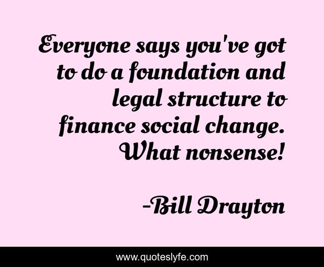 This page presents the quote "Everyone says you've got to do a foundation and legal structure to finance social change. What nonsense!". Author of this quote is Bill Drayton. This quote is about foundation, change, legal,.