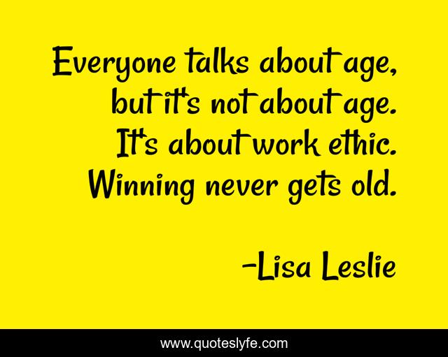 This page presents the quote "Everyone talks about age, but it's not about age. It's about work ethic. Winning never gets old.". Author of this quote is Lisa Leslie. This quote is about work ethic, work, winning,.
