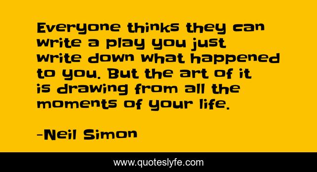 This page presents the quote "Everyone thinks they can write a play you just write down what happened to you. But the art of it is drawing from all the moments of your life.". Author of this quote is Neil Simon. This quote is about moments, life, drawing,.