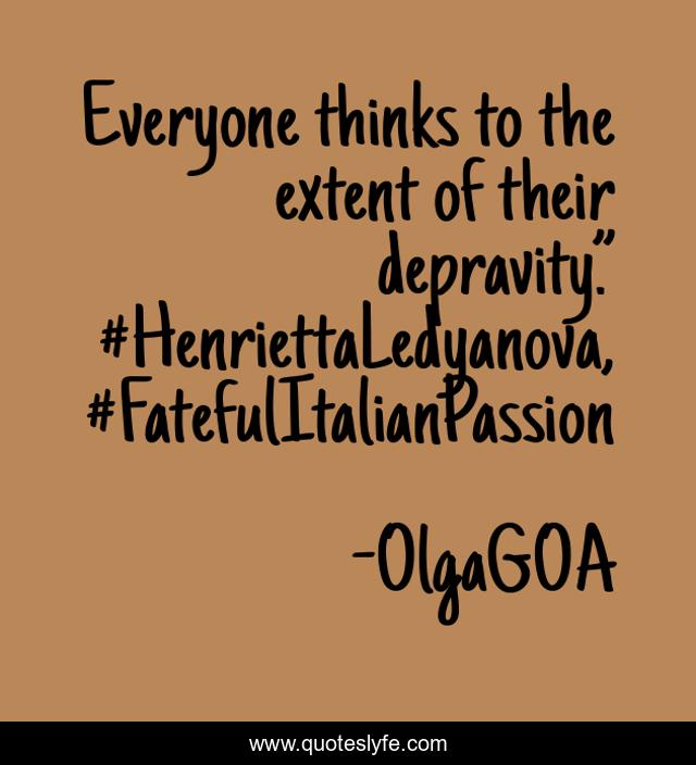 This page presents the quote "Everyone thinks to the extent of their depravity.” #HenriettaLedyanova, #FatefulItalianPassion". Author of this quote is OlgaGOA. This quote is about erotic-romance, love, fip, romance, humor, passion, series-romance, affection,.