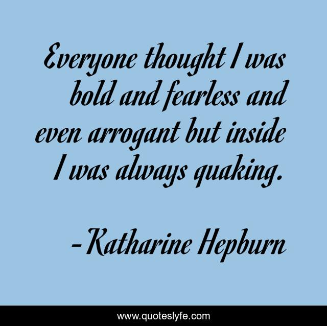 This page presents the quote "Everyone thought I was bold and fearless and even arrogant but inside I was always quaking.". Author of this quote is Katharine Hepburn. .