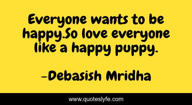 This page presents the quote "Everyone wants to be happy.So love everyone like a happy puppy.". Author of this quote is Debasish Mridha. This quote is about life, love, knowledge, inspirational, intelligence, philosophy, wisdom, quotes, affection,.