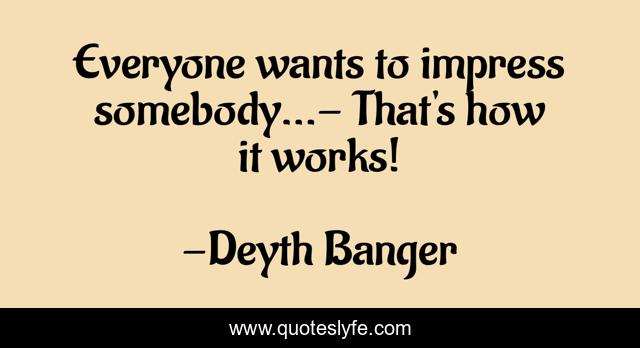 This page presents the quote "Everyone wants to impress somebody...- That's how it works!". Author of this quote is Deyth Banger. This quote is about wants, works, impress,.