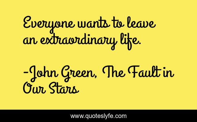 "John Green, The Fault in Our Stars Quotes." Quoteslyfe.com, 2025. Sat. 06 Dec. 2025. <https://www.quoteslyfe.com/quote/Everyone-wants-to-leave-an-extraordinary-life-165104>.