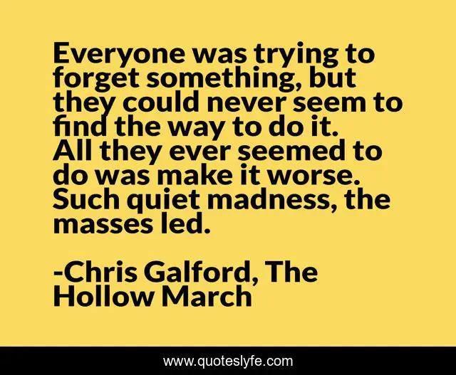 "Chris Galford, The Hollow March Quotes." Quoteslyfe.com, 2025. Sat. 06 Dec. 2025. <https://www.quoteslyfe.com/quote/Everyone-was-trying-to-forget-something-but-124785>.