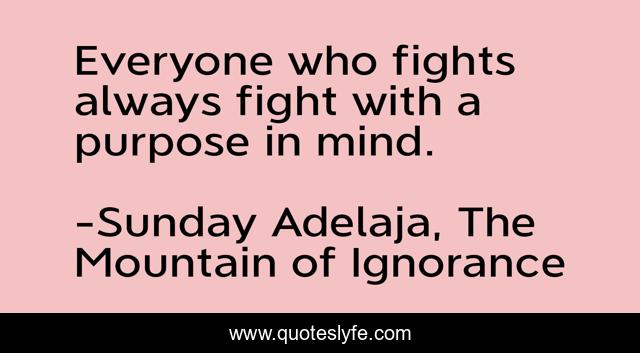 This page presents the quote "Everyone who fights always fight with a purpose in mind.". Author of this quote is Sunday Adelaja, The Mountain of Ignorance. This quote is about mountain, life, darkness, power, danger, god, fights, people, ignorance,.