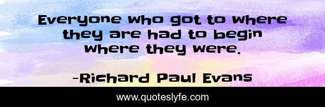 This page presents the quote "Everyone who got to where they are had to begin where they were.". Author of this quote is Richard Paul Evans. This quote is about enthusiasm, inspirational,.
