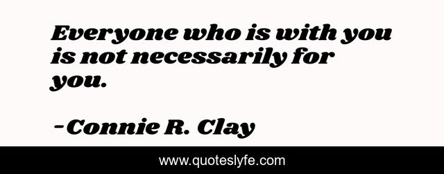 This page presents the quote "Everyone who is with you is not necessarily for you.". Author of this quote is Connie R. Clay. This quote is about friends, loyalty, people,.