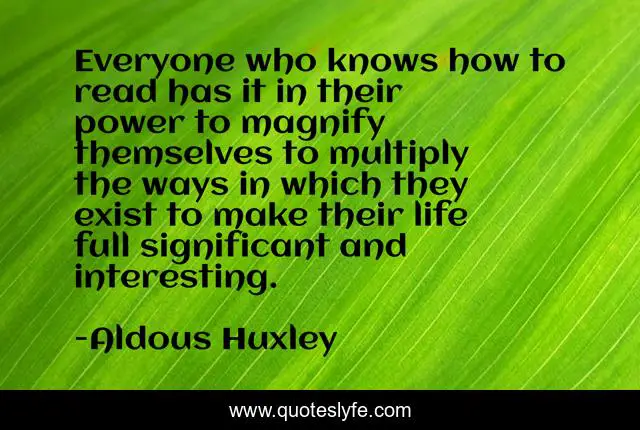 This page presents the quote "Everyone who knows how to read has it in their power to magnify themselves to multiply the ways in which they exist to make their life full significant and interesting.". Author of this quote is Aldous Huxley. This quote is about books, reading,.