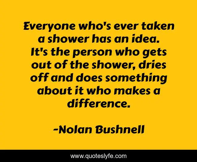 This page presents the quote "Everyone who's ever taken a shower has an idea. It's the person who gets out of the shower, dries off and does something about it who makes a difference.". Author of this quote is Nolan Bushnell. This quote is about person, difference, idea,.