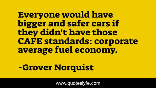 This page presents the quote "Everyone would have bigger and safer cars if they didn't have those CAFE standards: corporate average fuel economy.". Author of this quote is Grover Norquist. This quote is about fuel, cafe, economy,.