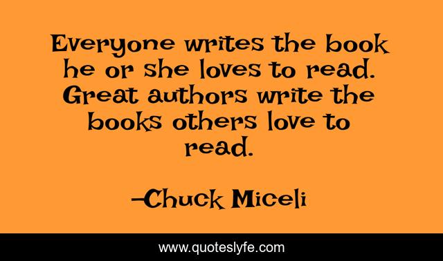 This page presents the quote "Everyone writes the book he or she loves to read. Great authors write the books others love to read.". Author of this quote is Chuck Miceli. This quote is about fantasy, nonfiction-criminal-justice, author, paranormal, fiction, presenter, the-write-stuff,.