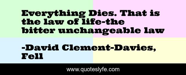 "David Clement-Davies, Fell Quotes." Quoteslyfe.com, 2025. Tue. 09 Dec. 2025. <https://www.quoteslyfe.com/quote/Everything-Dies-That-is-the-law-of-241549>.