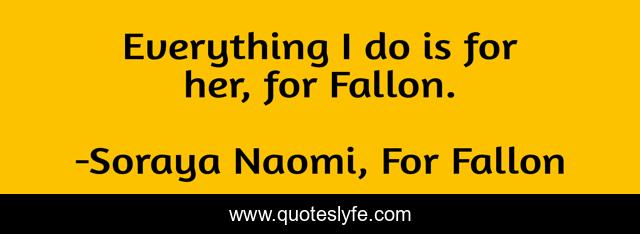 This page presents the quote "Everything I do is for her, for Fallon.". Author of this quote is Soraya Naomi, For Fallon. This quote is about mafia, intense, romantic-suspense,.