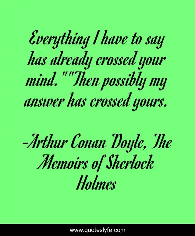This page presents the quote "Everything I have to say has already crossed your mind.""Then possibly my answer has crossed yours.". Author of this quote is Arthur Conan Doyle, The Memoirs of Sherlock Holmes. .