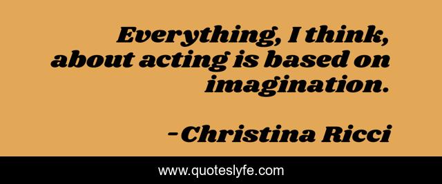 This page presents the quote "Everything, I think, about acting is based on imagination.". Author of this quote is Christina Ricci. This quote is about everything, acting, think,.
