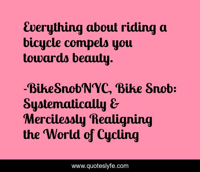 "BikeSnobNYC, Bike Snob: Systematically & Mercilessly Realigning the World of Cycling Quotes." Quoteslyfe.com, 2025. Sat. 06 Dec. 2025. <https://www.quoteslyfe.com/quote/Everything-about-riding-a-bicycle-compels-you-60840>.