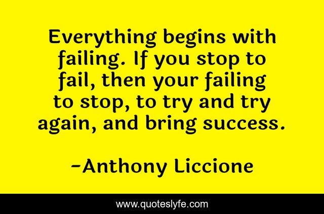 This page presents the quote "Everything begins with failing. If you stop to fail, then your failing to stop, to try and try again, and bring success.". Author of this quote is Anthony Liccione. This quote is about plans, success, dont-give-up, letting-go, try-and-try-again, failure, goals, work-hard, dreams,.