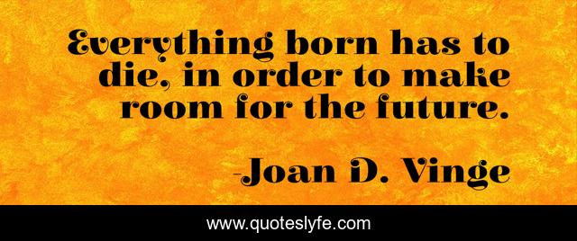 This page presents the quote "Everything born has to die, in order to make room for the future.". Author of this quote is Joan D. Vinge. This quote is about born, die, everything,.