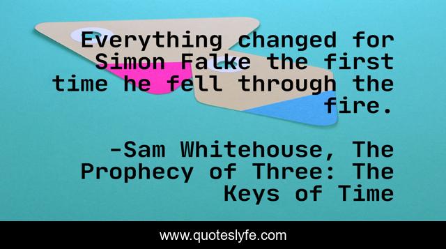 "Sam Whitehouse, The Prophecy of Three: The Keys of Time Quotes." Quoteslyfe.com, 2025. Fri. 05 Dec. 2025. <https://www.quoteslyfe.com/quote/Everything-changed-for-Simon-Falke-the-first-252057>.