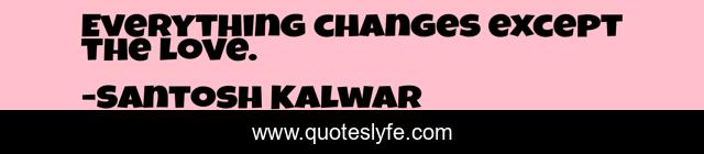 "Santosh Kalwar Quotes." Quoteslyfe.com, 2025. Sat. 06 Dec. 2025. <https://www.quoteslyfe.com/quote/Everything-changes-except-the-love-17960>.