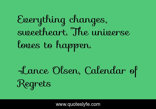 "Lance Olsen, Calendar of Regrets Quotes." Quoteslyfe.com, 2025. Mon. 08 Dec. 2025. <https://www.quoteslyfe.com/quote/Everything-changes-sweetheart-The-universe-loves-to-59844>.