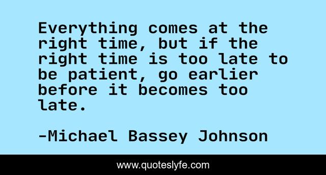 "Michael Bassey Johnson Quotes." Quoteslyfe.com, 2025. Mon. 08 Dec. 2025. <https://www.quoteslyfe.com/quote/Everything-comes-at-the-right-time-but-193147>.