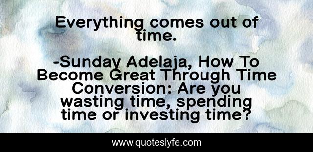 "Sunday Adelaja, How To Become Great Through Time Conversion: Are you wasting time, spending time or investing time? Quotes." Quoteslyfe.com, 2025. Mon. 08 Dec. 2025. <https://www.quoteslyfe.com/quote/Everything-comes-out-of-time-39062>.