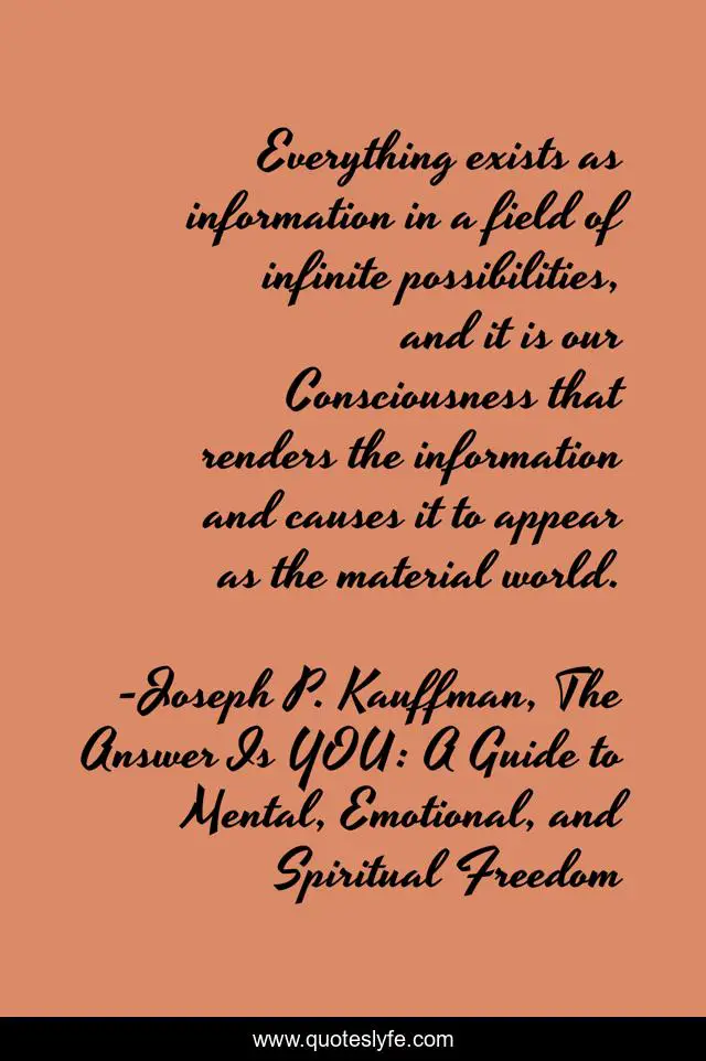 "Joseph P. Kauffman, The Answer Is YOU: A Guide to Mental, Emotional, and Spiritual Freedom Quotes." Quoteslyfe.com, 2025. Fri. 05 Dec. 2025. <https://www.quoteslyfe.com/quote/Everything-exists-as-information-in-a-field-13901>.
