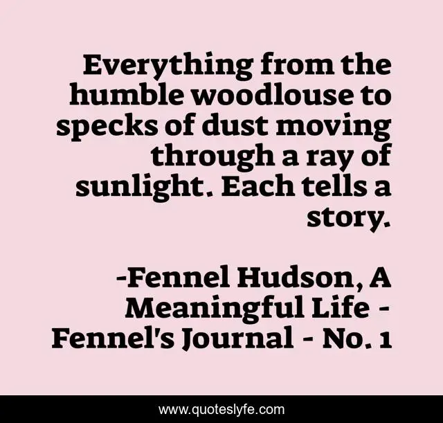 "Fennel Hudson, A Meaningful Life - Fennel's Journal - No. 1 Quotes." Quoteslyfe.com, 2025. Mon. 08 Dec. 2025. <https://www.quoteslyfe.com/quote/Everything-from-the-humble-woodlouse-to-specks-186126>.