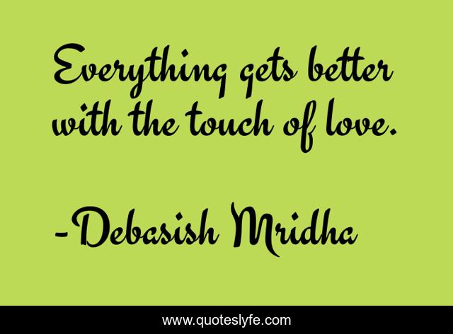 This page presents the quote "Everything gets better with the touch of love.". Author of this quote is Debasish Mridha. This quote is about debasish, touch-of-love, mridha, philosophy, inspirational, enthusiasm,.