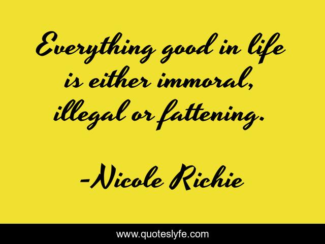 This page presents the quote "Everything good in life is either immoral, illegal or fattening.". Author of this quote is Nicole Richie. This quote is about life, lament, illegal, immorality, true, fattening,.