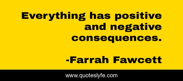 This page presents the quote "Everything has positive and negative consequences.". Author of this quote is Farrah Fawcett. This quote is about negative, consequences,.