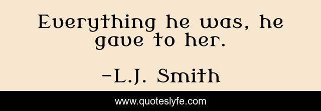 "L.J. Smith Quotes." Quoteslyfe.com, 2025. Sat. 06 Dec. 2025. <https://www.quoteslyfe.com/quote/Everything-he-was-he-gave-to-her-236730>.