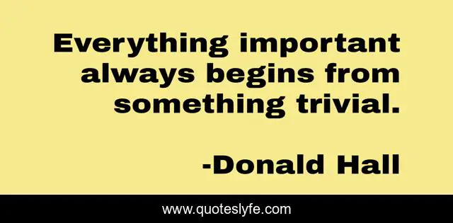 This page presents the quote "Everything important always begins from something trivial.". Author of this quote is Donald Hall. This quote is about always, important,.
