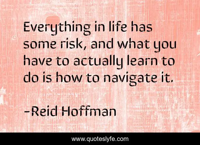 This page presents the quote "Everything in life has some risk, and what you have to actually learn to do is how to navigate it.". Author of this quote is Reid Hoffman. This quote is about navigate, managing-risk, risk,.