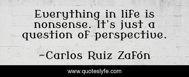 This page presents the quote "Everything in life is nonsense. It's just a question of perspective.". Author of this quote is Carlos Ruiz Zafón. This quote is about zafon, game, nonsense, angel, perspective,.