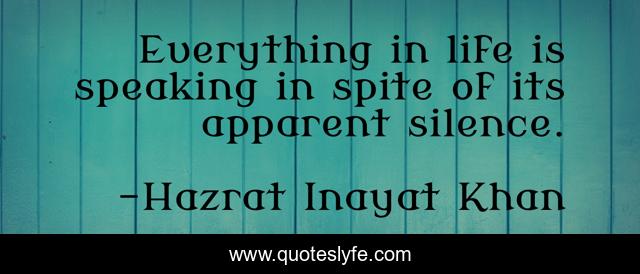 This page presents the quote "Everything in life is speaking in spite of its apparent silence.". Author of this quote is Hazrat Inayat Khan. .