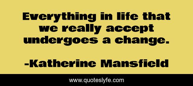 This page presents the quote "Everything in life that we really accept undergoes a change.". Author of this quote is Katherine Mansfield. This quote is about positive, confidence, creating, change,.