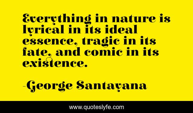 This page presents the quote "Everything in nature is lyrical in its ideal essence, tragic in its fate, and comic in its existence.". Author of this quote is George Santayana. .