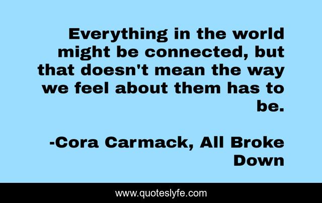 "Cora Carmack, All Broke Down Quotes." Quoteslyfe.com, 2025. Sun. 07 Dec. 2025. <https://www.quoteslyfe.com/quote/Everything-in-the-world-might-be-connected-148616>.