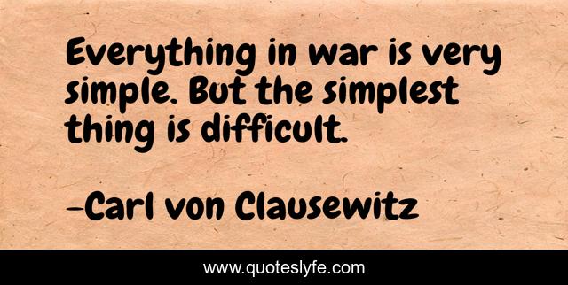 This page presents the quote "Everything in war is very simple. But the simplest thing is difficult.". Author of this quote is Carl von Clausewitz. This quote is about simple, difficult,.