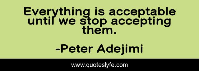 "Peter Adejimi Quotes." Quoteslyfe.com, 2025. Fri. 05 Dec. 2025. <https://www.quoteslyfe.com/quote/Everything-is-acceptable-until-we-stop-accepting-200500>.