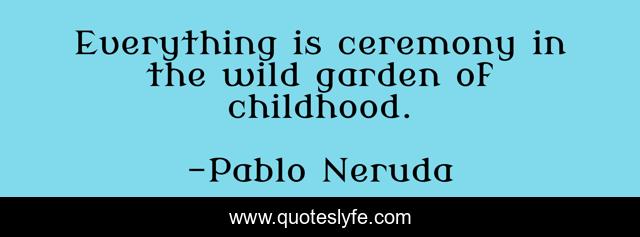 This page presents the quote "Everything is ceremony in the wild garden of childhood.". Author of this quote is Pablo Neruda. This quote is about ceremony, childhood,.
