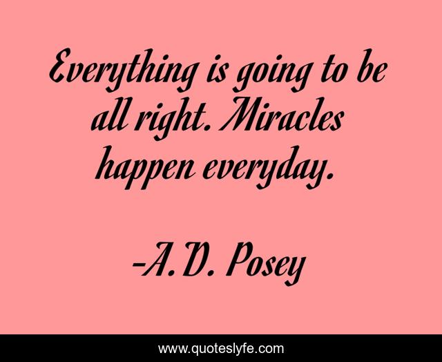 This page presents the quote "Everything is going to be all right. Miracles happen everyday.". Author of this quote is A.D. Posey. This quote is about miracles, story, storytelling, storytellers, writing, write, writers, ad-posey, inspirational,.